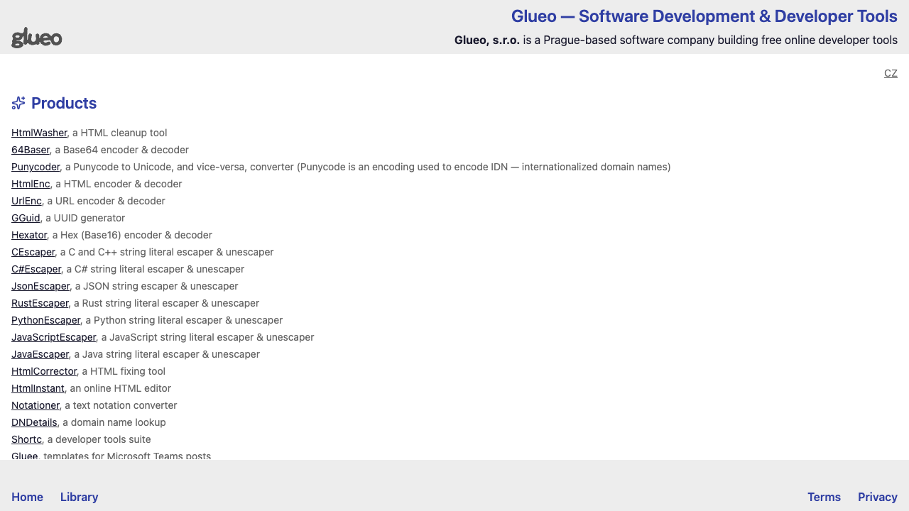 Glueo, s.r.o. is a Prague-based software company building free online developer tools